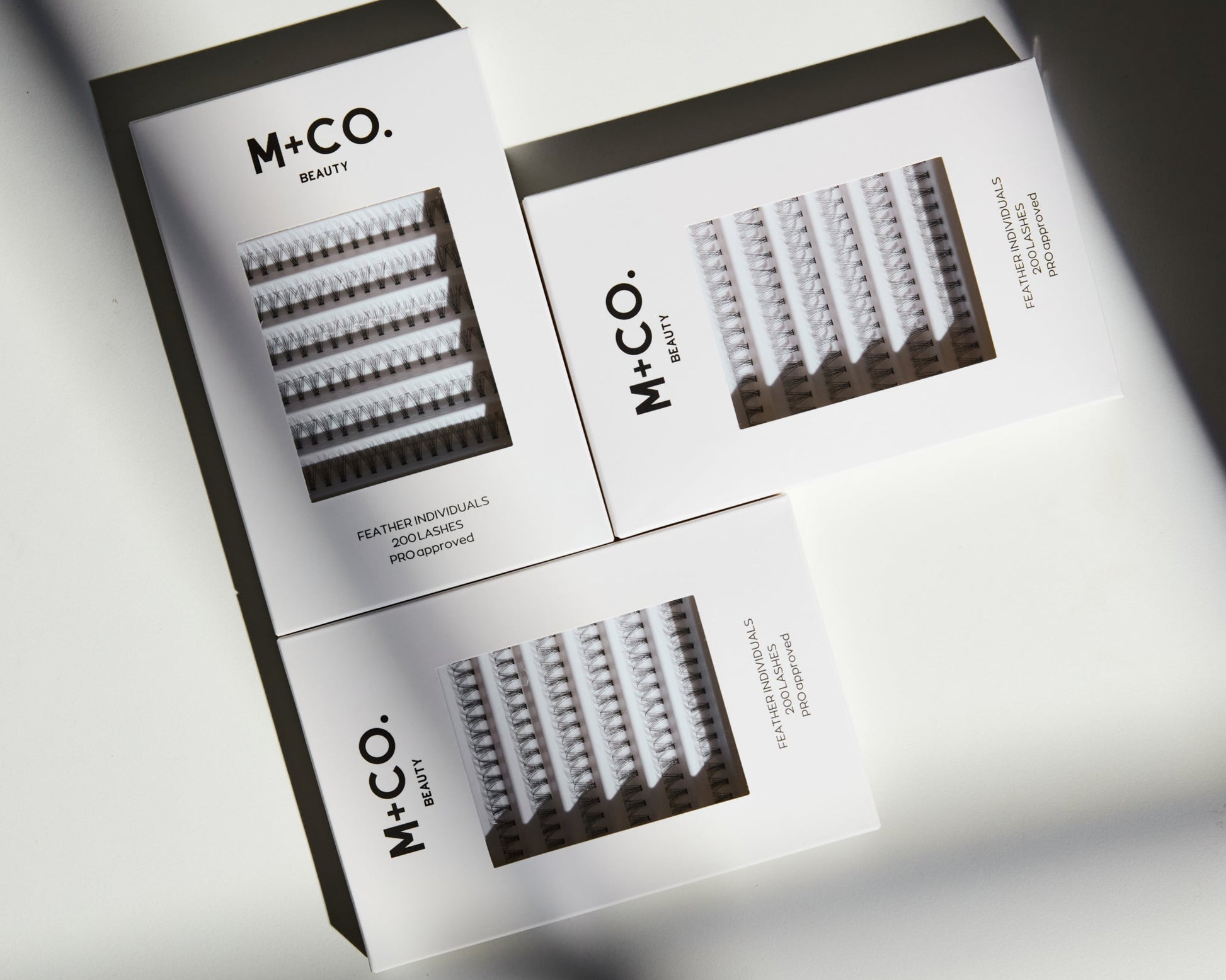 Las Feather Lashes de M+Co son las más ligeras y delicadas, diseñadas para ofrecer un acabado natural y etéreo. Con solo 10 fibras por punto, estas pestañas imitan la suavidad y la forma natural de las pestañas reales, proporcionando una elevación sutil y cómoda para el uso diario.